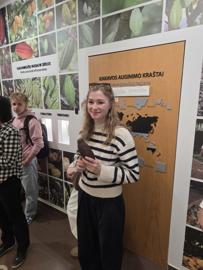 Tam nas je vodička popeljala skozi zgodovino čokolade, kjer smo izvedeli veliko zanimivosti o njenem nastanku in razvoju. Po ogledu smo sodelovali še v praktični delavnici, kjer smo sami ustvarjali svoje čokoladne izdelke.