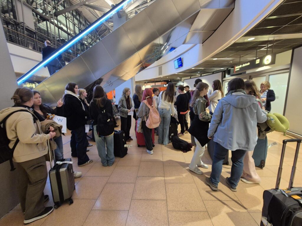 Naše potovanje se je začelo v petek, 10. oktobra, ko smo se iz šole odpravili proti zagrebškem letališču petnajst minut do štirinajste ure. Na letališče smo prispeli brez večjih zapletov. Vreme je bilo lepo ves čas poleta. Na letališču v Hamburgu so nas pričakale gostujoče družine, s katerimi smo se na to odpravili proti domu. Do doma smo potrebovali kar nekaj časa, saj je bila na cesti policijska kontrola. Ko smo prispeli domov, smo pojedli večerjo, se z družino malo spoznali, si izmenjali darila in pogledali film. Na koncu pa smo se vsi utrujeno odpravili spat.